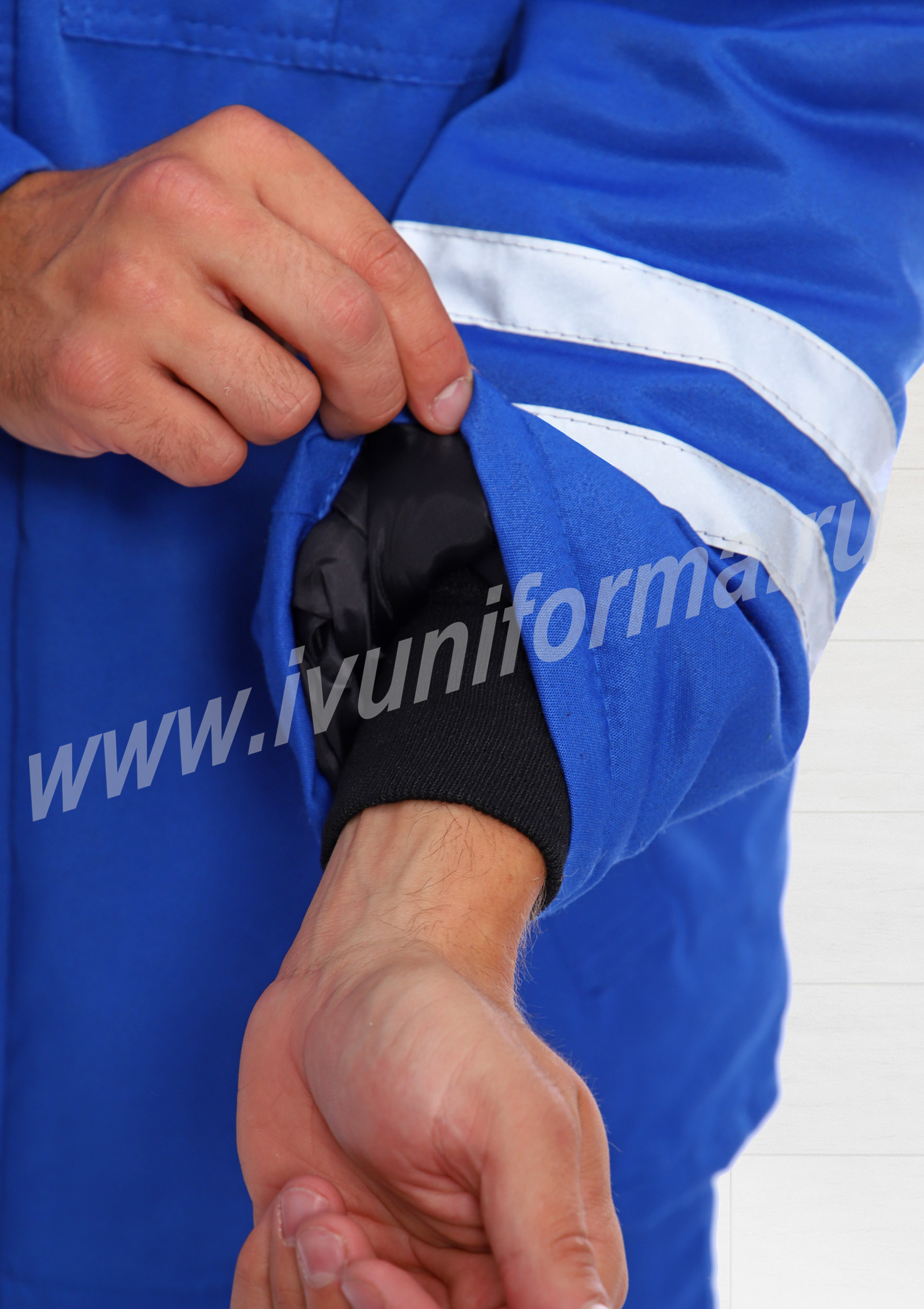 Брюки с высоким утепленным поясом, со шлевками под ремень, застежкой на две пуговицы и молнию. По низу брюк расположены две светоотражающие ленты. Утепление брюк 200 гр/кв.м.