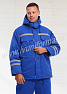 Костюм мужской для скорой помощи состоит из куртки и брюк. Куртка средней длины с воротником стойкой, с центральной застежкой на молнию и ветрозащитной планкой на кнопки. Для регулировки объёма куртка имеет кулису на уровне талии. На куртке два фигурных нагрудных кармана с клапаном на кнопке и два нижних прорезных кармана. На передней части, спинке и рукавах светоотражающие ленты. Утепление куртки 450 гр/кв.м.